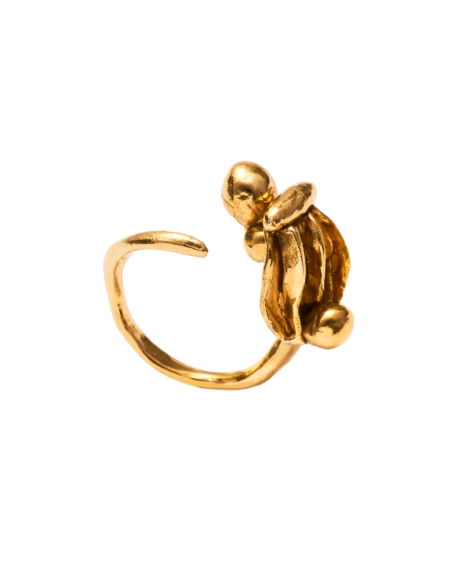 Anillo abierto escultural inspirado en la armonía de la alineación.